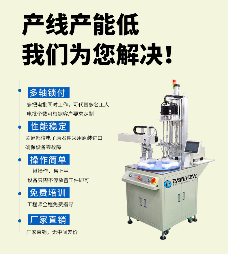 - 產品簡介: 該款自動打螺絲機,可以加散熱風扇連同墊片一起打螺絲,節省企業擰螺絲的時間,快速提升了產品生產效率。