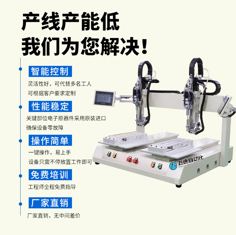 - 產品簡介:雙頭雙工位坐標式螺絲機,可以實現兩個產品一起送鎖,每個產品擰緊螺絲只需要2-3秒即可,助力企業輕松實現高效生產。